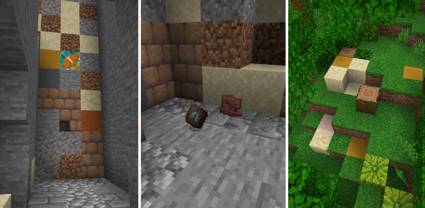 No, you won’t find diamonds or netherite here. The loot is focused on pottery sherds, armor trims, and the Sniffer egg.